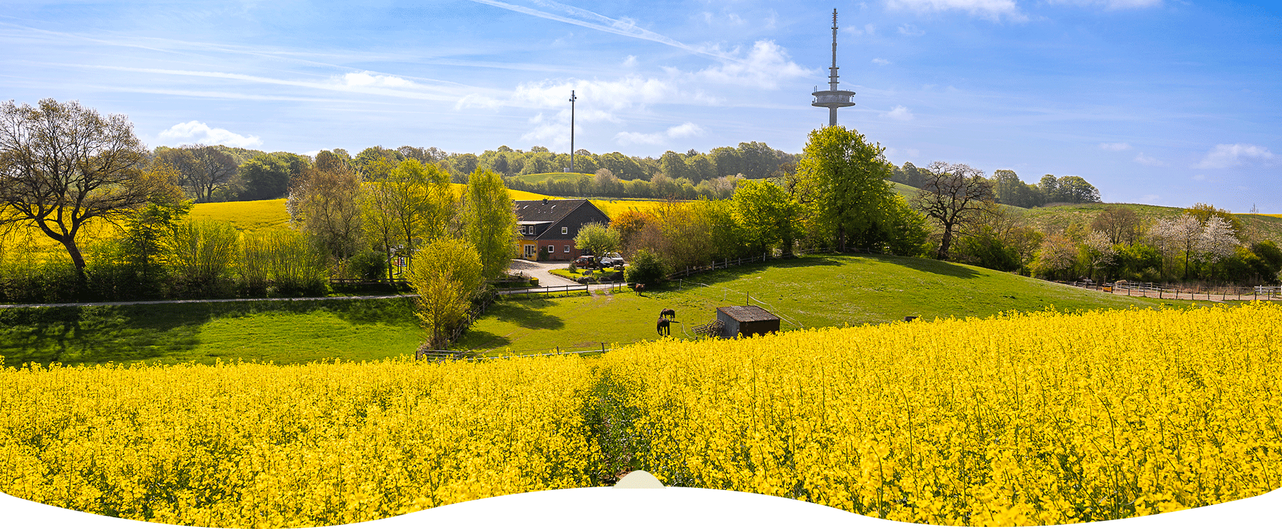 Mit Allem was dazu gehört. Am Fuße des Bungsberg, zwischen Sandstränden und grünen Hügeln liegt das Dorf Mönchneversdorf. Eingebettet zwischen Hügeln, Wäldern und Seen mit Blick auf die Ostsee liegt Schleswig-Holsteins höchstgelegener Ferienhof Schnoor am Fuße des Bungsbergs.